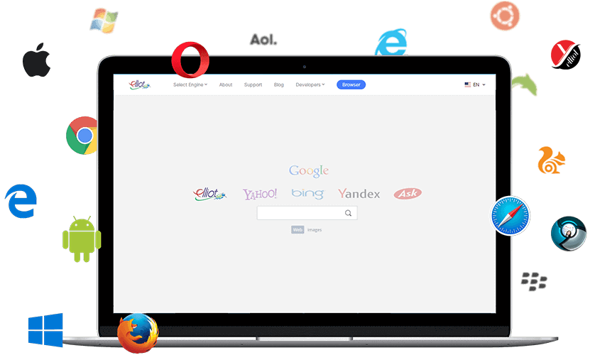 متصفح إليوت سريع و خفيف مع محرك بحث متعدد الأغراض و مانع إعلانات مدمج، وتصفح آمن عبر الإنترنت وتحكم أكثر في الخصوصية و الكوكيز والعديد من المزايا